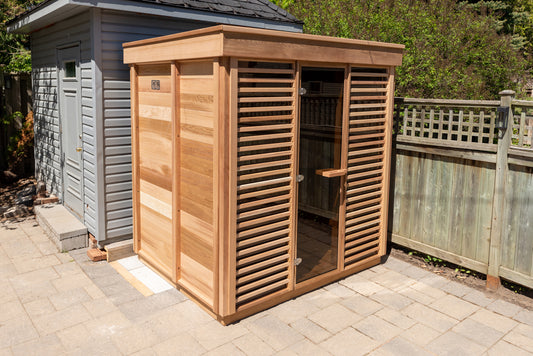 Outdoor & indoor saunas, built for our climate. Electric or wood-fired, configurable layouts, premium cedar, and white-glove installation in QC/ON.