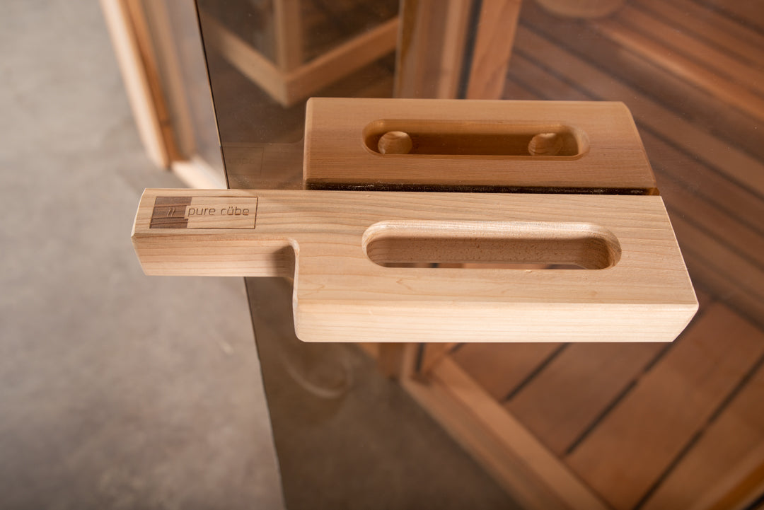 Le sauna extérieur Pure Cube CU550-CU552 apporte une touche de luxe inédite à votre maison ou chalet grâce à ses kits modulaires préfabriqués. Profitez pleinement du plein air grâce à sa grande baie vitrée double vitrage et sa porte entièrement vitrée. Offrez-vous, ainsi qu'à votre famille et vos amis, un moment de détente absolue avec ce sauna Pure Cube authentique et moderne.