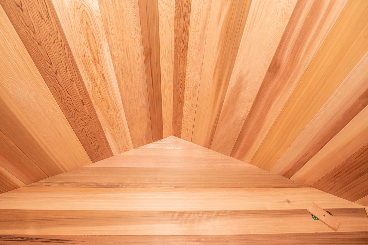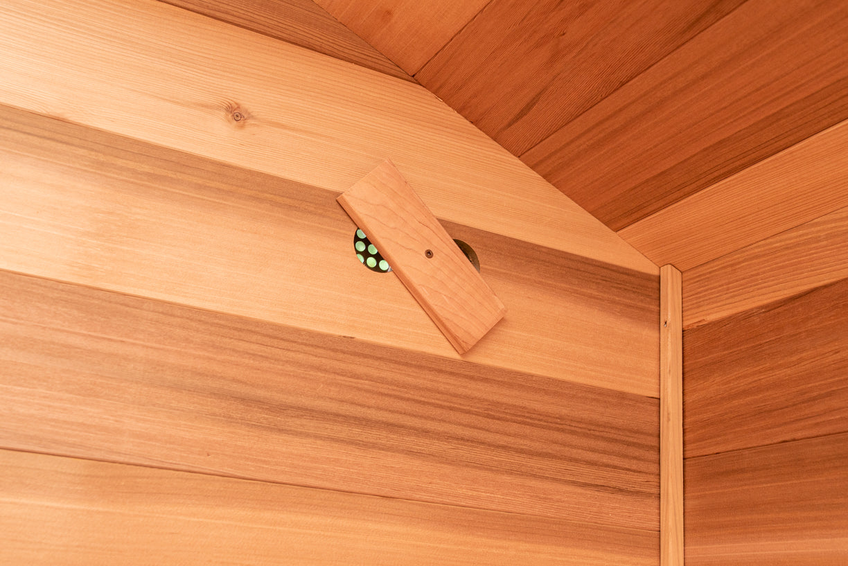 Entrez et découvrez un design soigné qui privilégie le confort. Les banquettes en cèdre, larges et lisses, aux bords arrondis, invitent à la détente et à l'assise. Des canaux de ventilation et une conception optimisée de la circulation de l'air assurent une température homogène, tandis que le parfum naturel du cèdre favorise la relaxation et la clarté d'esprit.