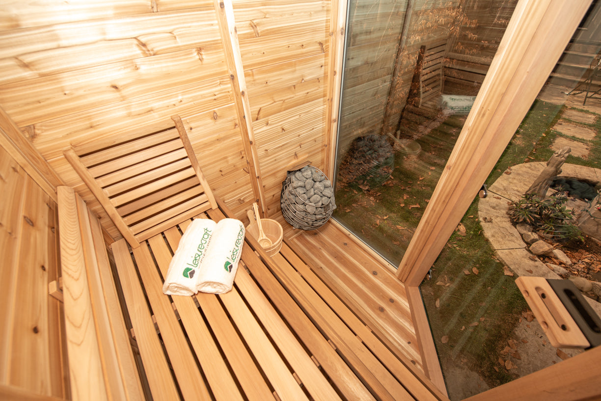 Sublimez votre rituel grâce à un éclairage d'ambiance doux et une vue dégagée. Ajoutez des huiles essentielles, des pierres de sauna et des accessoires pour personnaliser votre routine, des séances matinales énergisantes aux moments de détente profonde en soirée.