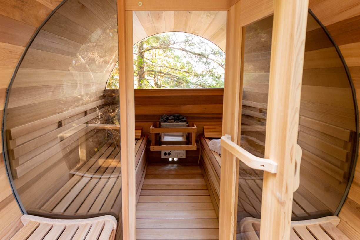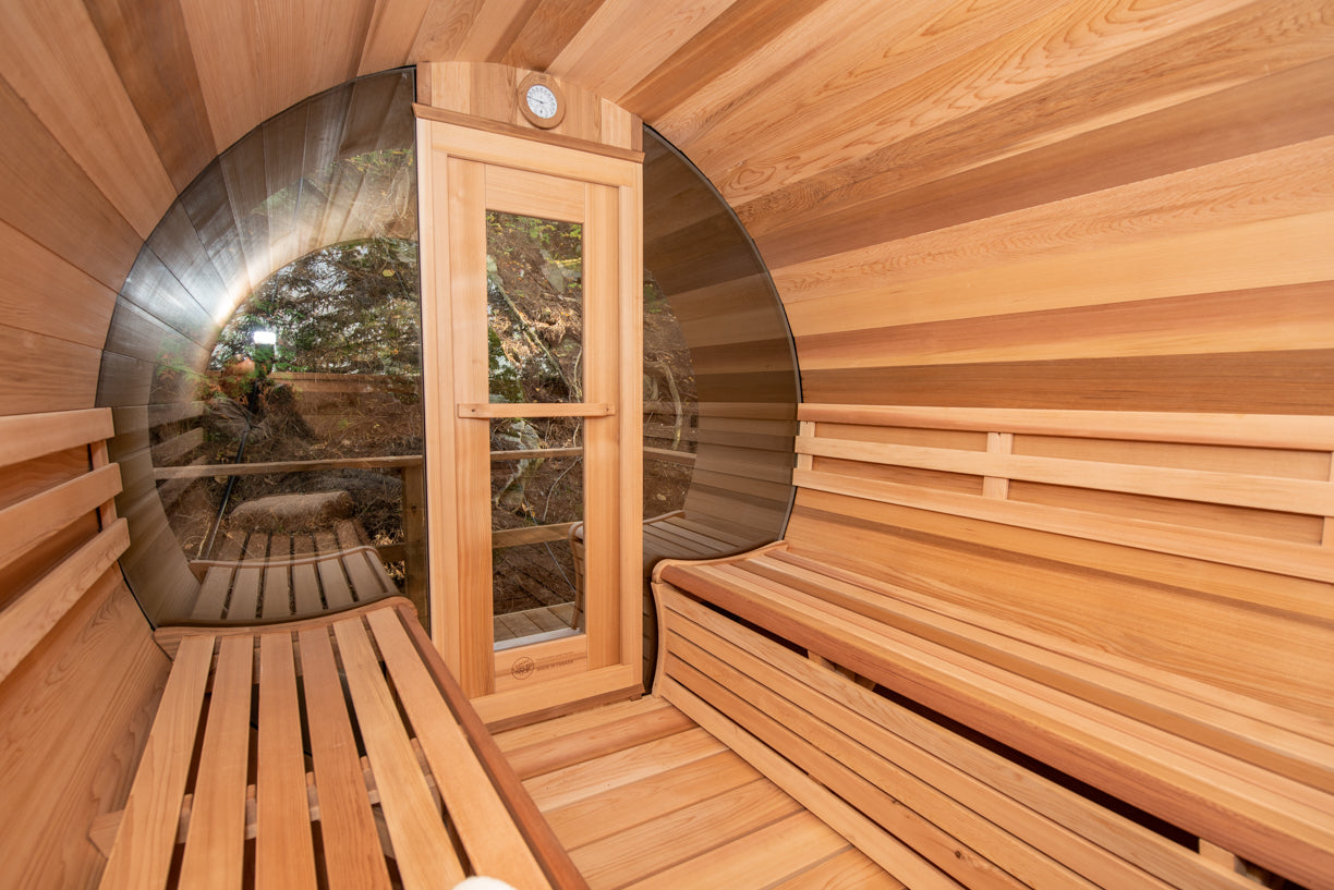 Step inside and experience thoughtful design that puts comfort first. The cedar benches are wide and smooth, with rounded edges that invite you to stretch out or sit comfortably. Ventilation channels and airflow design maintain even heat from top to bottom, while the natural scent of cedar enhances relaxation and clarity.