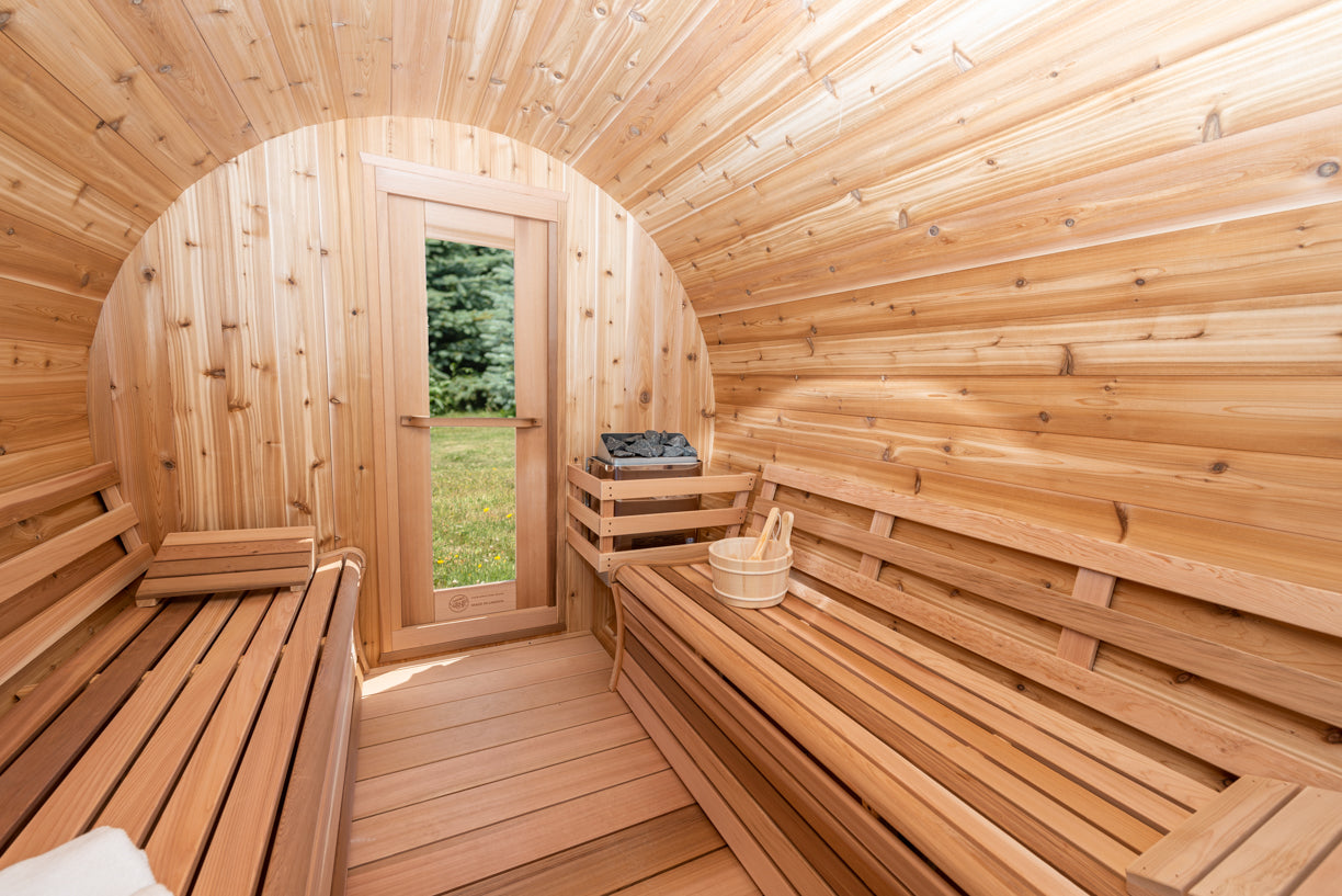 Step inside and experience thoughtful design that puts comfort first. The cedar benches are wide and smooth, with rounded edges that invite you to stretch out or sit comfortably. Ventilation channels and airflow design maintain even heat from top to bottom, while the natural scent of cedar enhances relaxation and clarity.