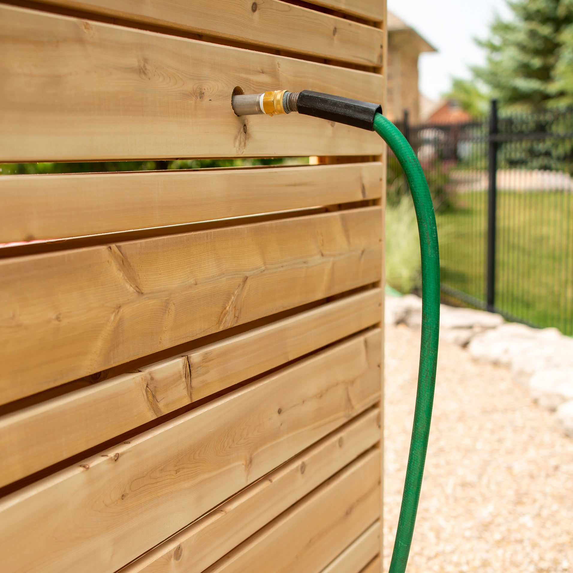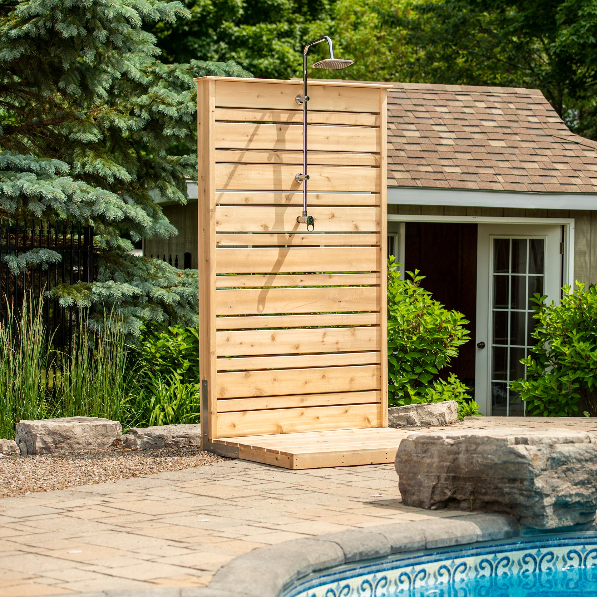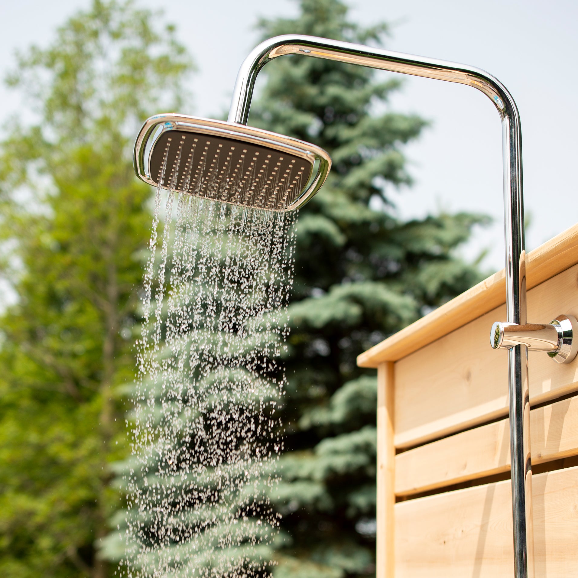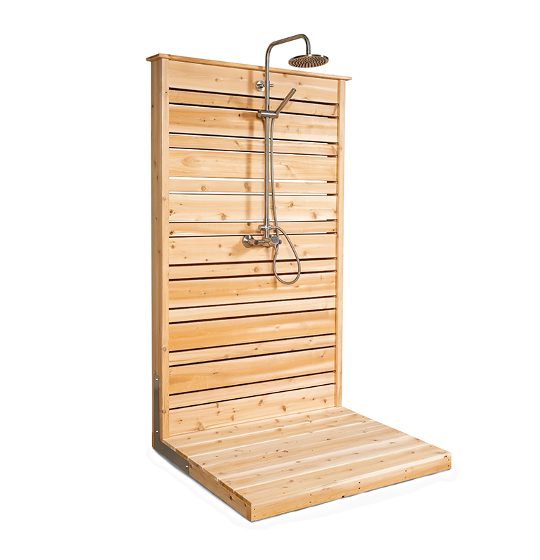 The Savannah Standing Shower from the Canadian Timber Collection by Dundalk Leisurecraft. Easy to assemble, hook up and move around if needed this shower is the perfect choice by your pool or spa to rinse off or for a quick cool down at the cottage lake.